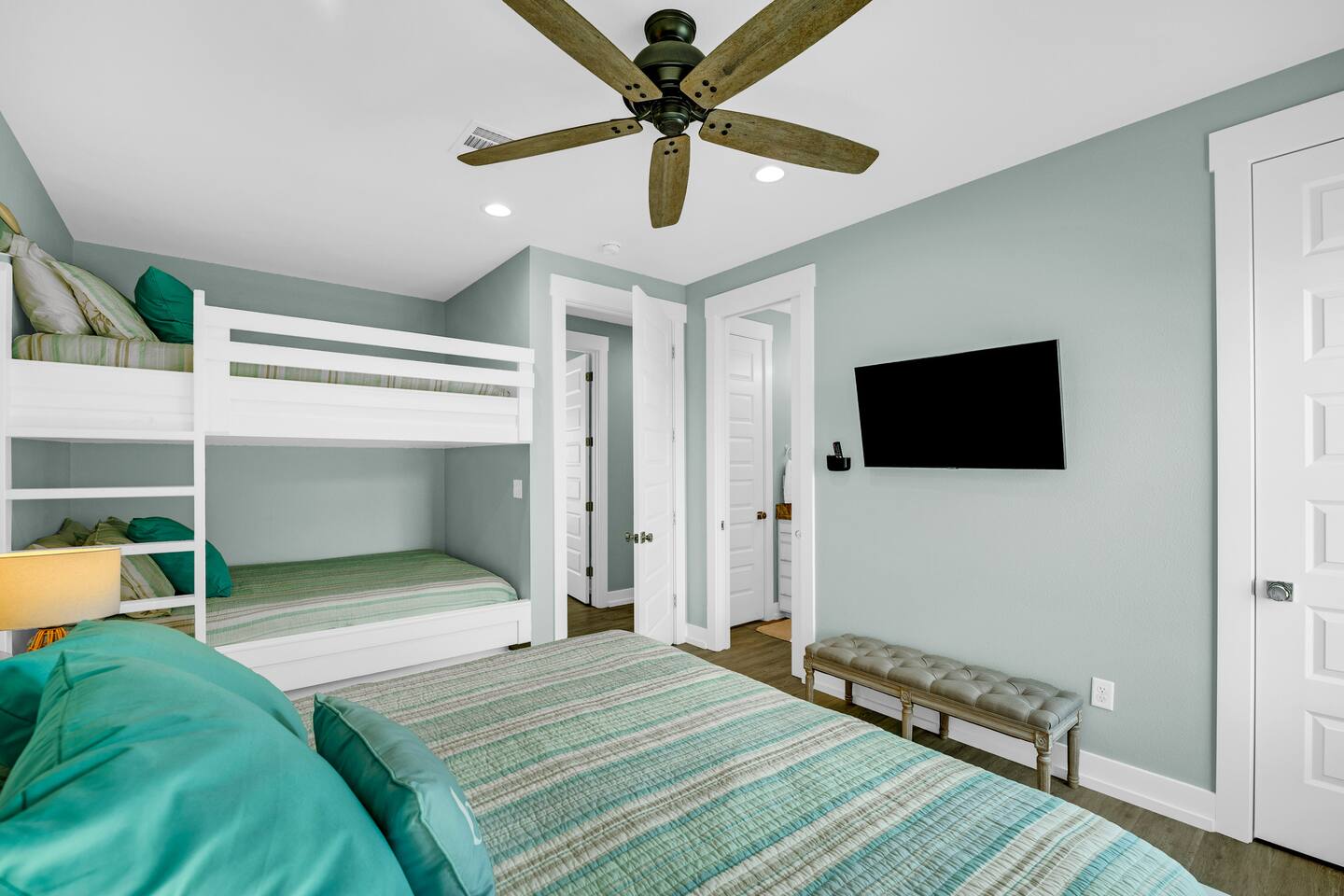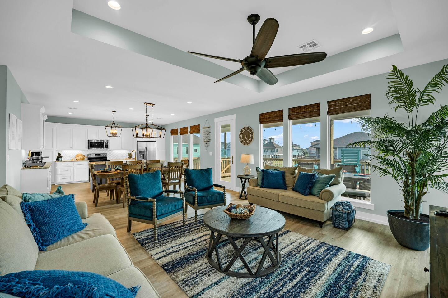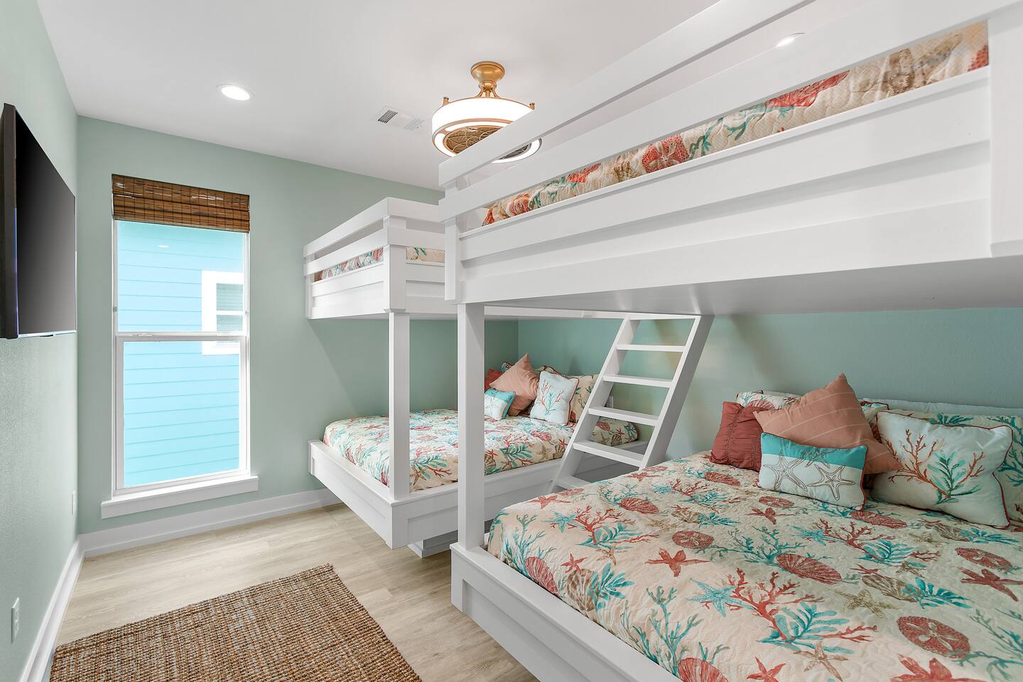 ☀️Sleeps 20+ ☀️All 5 Bedrooms w/ private baths ☀️3 Bedrooms with King sized Beds ☀️Queen Bunkroom with 4 Bunks ☀️2nd Level "Kids Zone" with double Twin Bunks, and Arcade machine ☀️Golf Cart add on $ Newly constructed 5 BR, 5 Bath all suite home in the deed restricted "Tidelands" Subdivision. Breakwater Beach House is steps away from the cinnamon sugar sands of the Gulf of Mexico with views of the breaking waves from the main deck! Bring your family and friends and come enjoy the Beach Life!