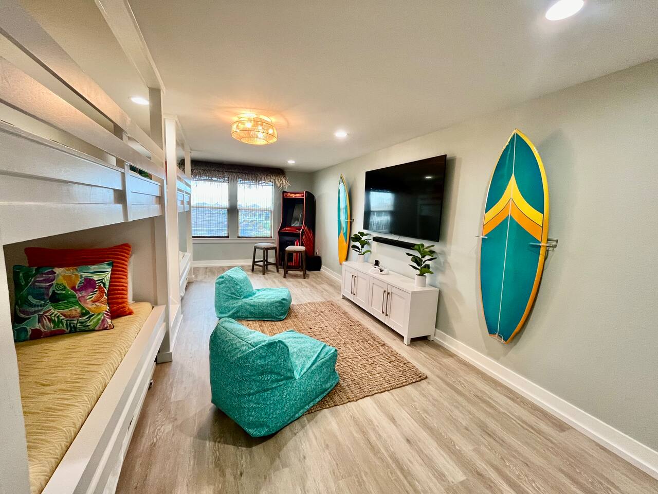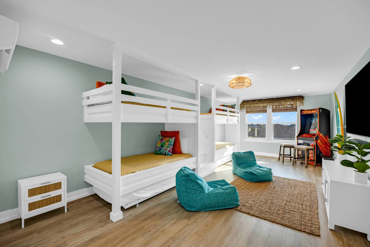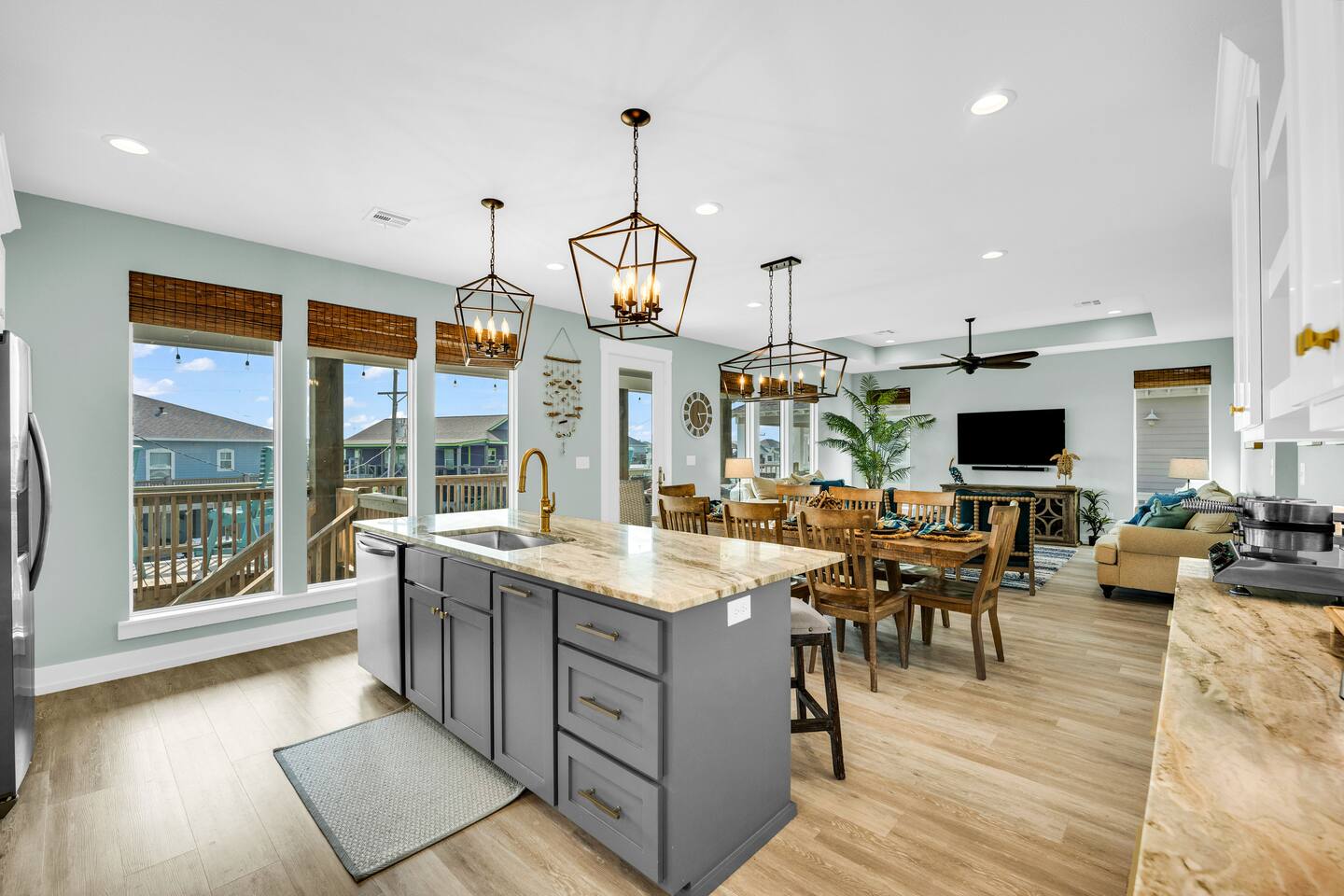 Brand New Home! Every room has its own connected bathroom for privacy! Located on Beach Access Road! 150 steps to the Sand! Golf Cart INCLUDED from December thru February only with signed waiver! ☀️Fully stocked kitchen with utensils and small appliances (coffee maker, blender, mixer, toaster, commercial waffle iron etc.) ☀️Snowcone Maker! ☀️Smart TVs in every room including downstairs entertaining area. ☀️Everything you need is included for a fun trip to the beach including: ☀️ All Linens, BathTowels ☀️ Beach Towels ☀️ Beach Chairs ☀️ Umbrellas ☀️ Beach Wagons ☀️ Boogie Boards ☀️ Large ice chest ☀️ Sand toys
