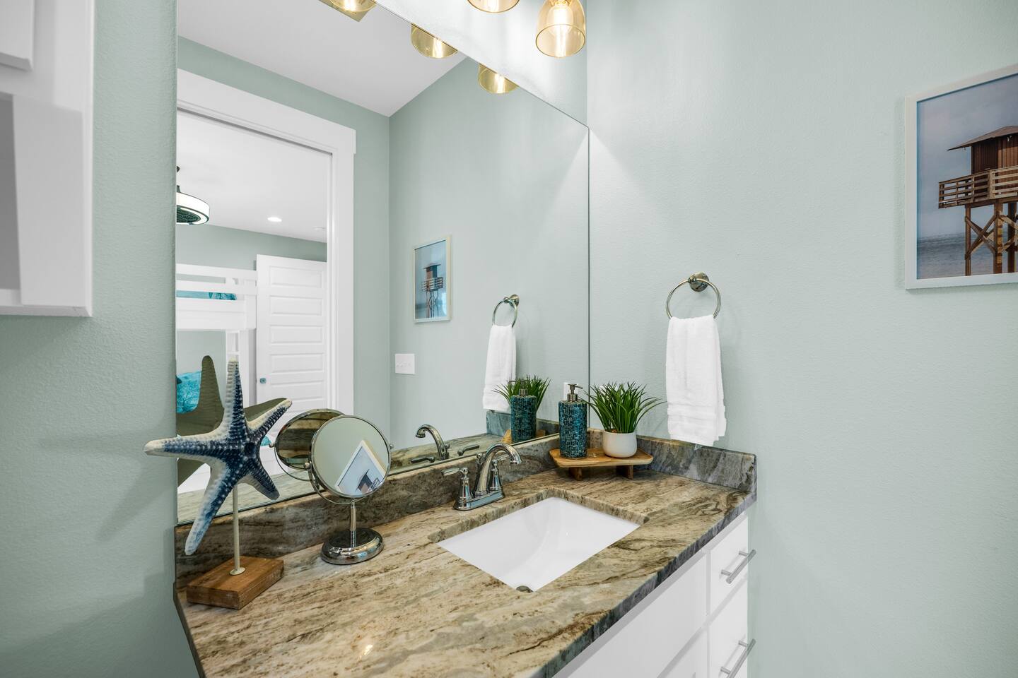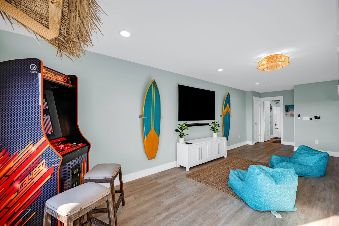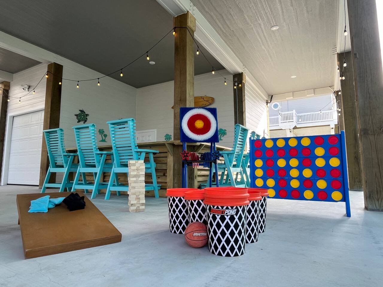 Brand New Home! Every room has its own connected bathroom for privacy! Located on Beach Access Road! 150 steps to the Sand! Golf Cart INCLUDED from December thru February only with signed waiver! ☀️Fully stocked kitchen with utensils and small appliances (coffee maker, blender, mixer, toaster, commercial waffle iron etc.) ☀️Snowcone Maker! ☀️Smart TVs in every room including downstairs entertaining area. ☀️Everything you need is included for a fun trip to the beach including: ☀️ All Linens, BathTowels ☀️ Beach Towels ☀️ Beach Chairs ☀️ Umbrellas ☀️ Beach Wagons ☀️ Boogie Boards ☀️ Large ice chest ☀️ Sand toys